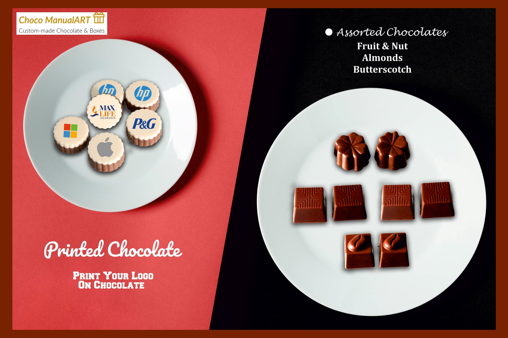 Choco ManualART understands the significance of personalized and memorable corporate gifts. Our logo-printed chocolates are crafted with precision and care, ensuring that your brand shines through. Explore our range of options and let us help you sweeten your corporate relations.