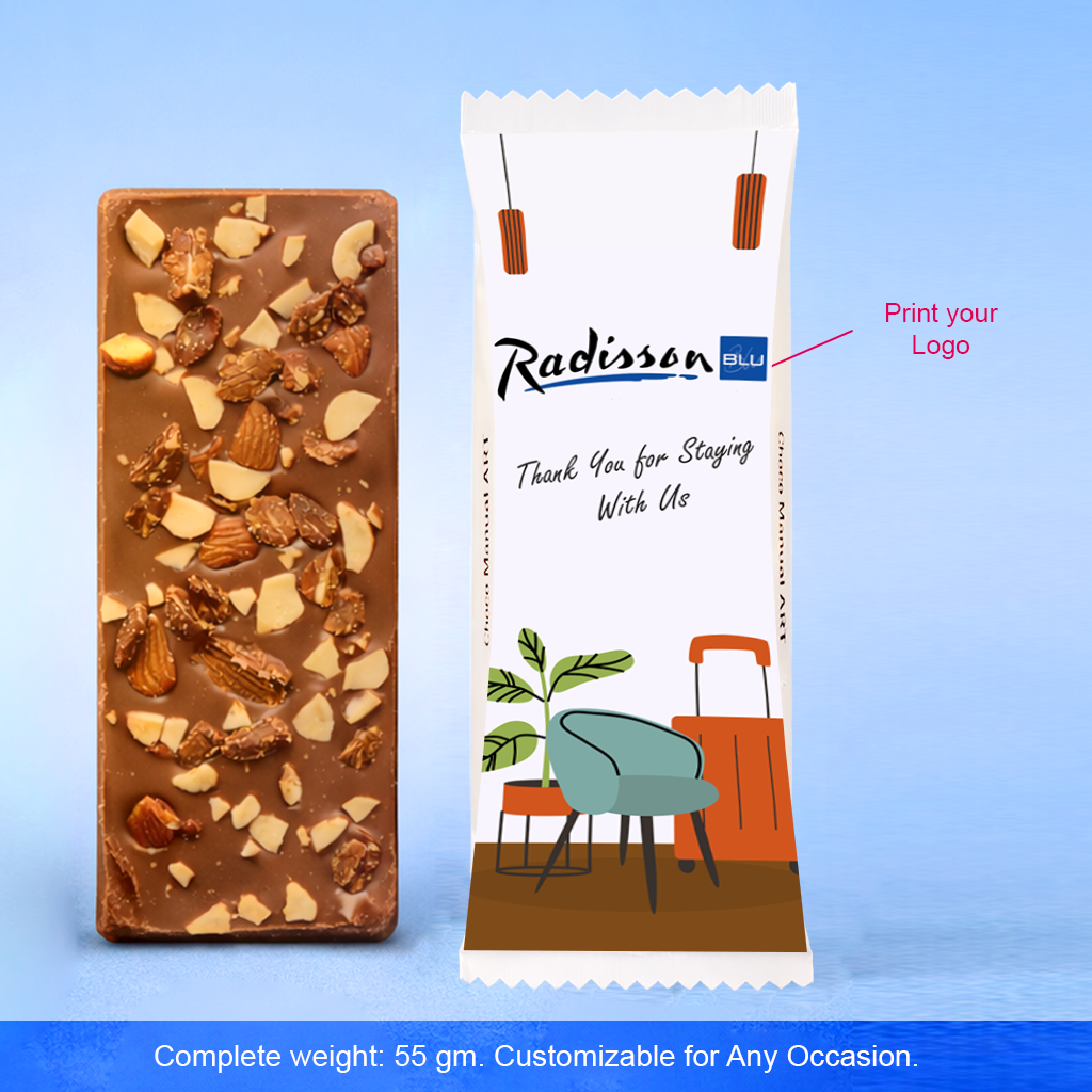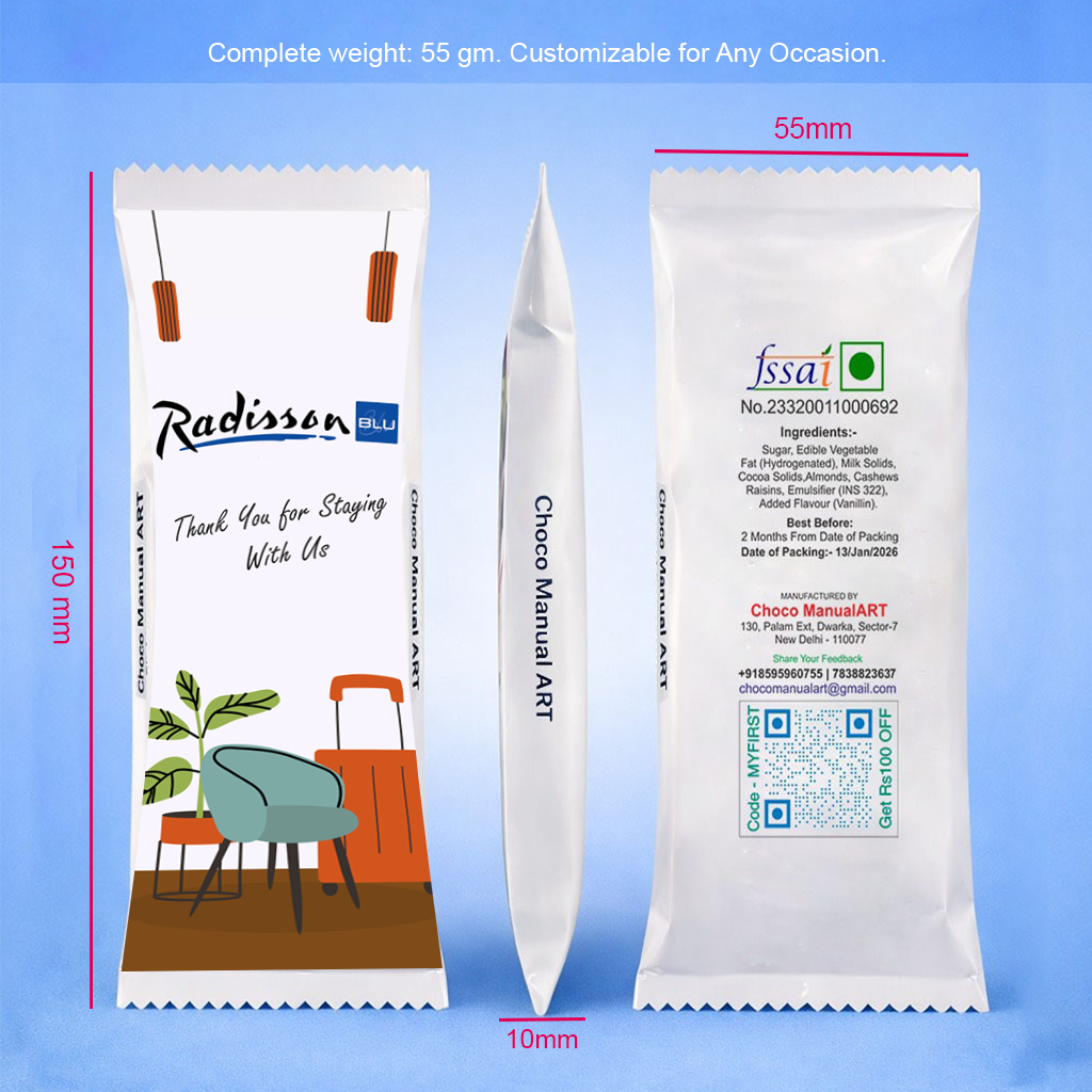 With a total weight of 55 grams, this chocolate bar is ideal for premium single-serve gifting. The compact dimensions (150 mm x 55 mm x 10 mm) make it easy to carry, distribute, and present beautifully.