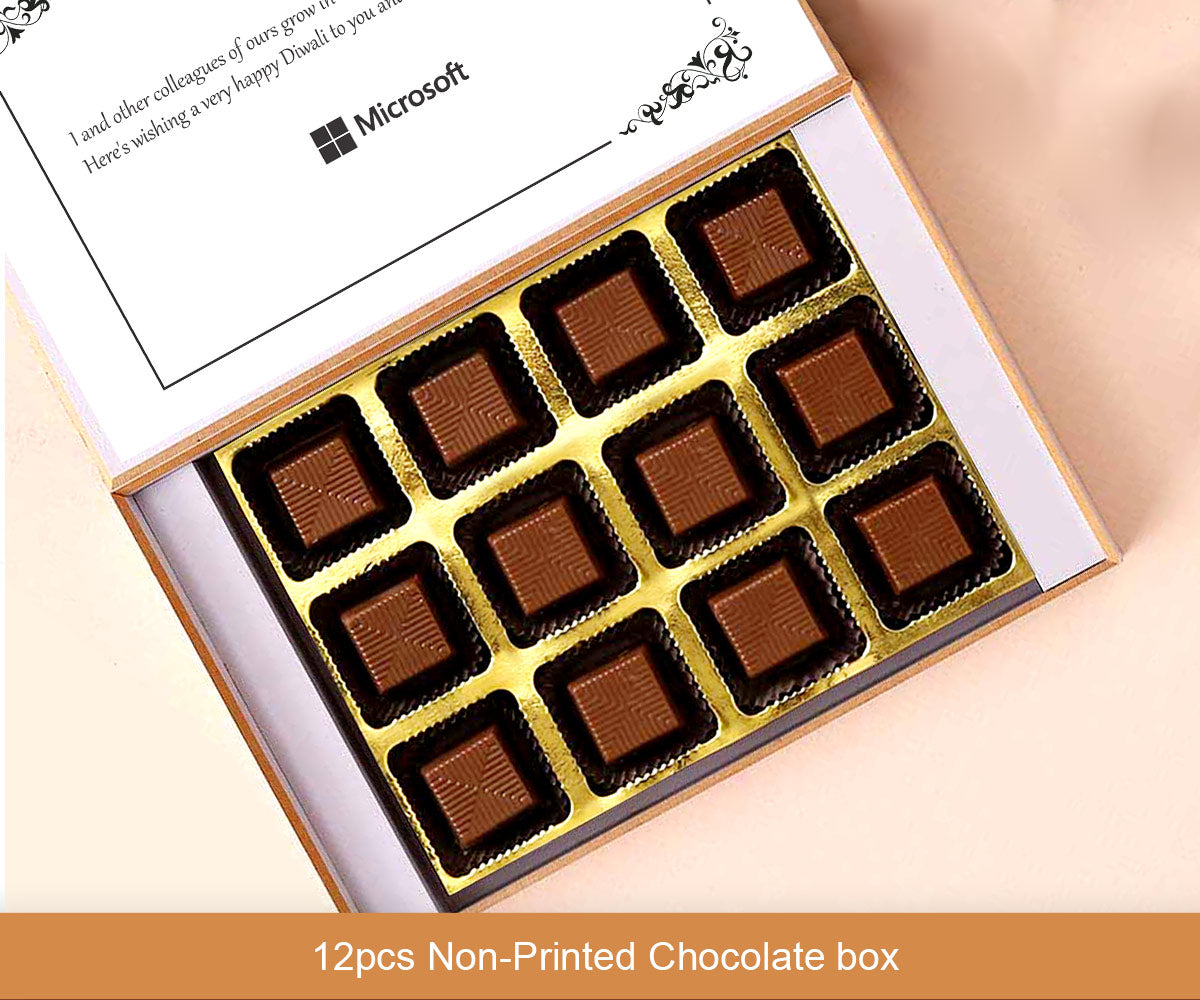• For assorted chocolates Box (Non Printed):There will be Fruit & Nuts filling only and no customisation will be done on it.