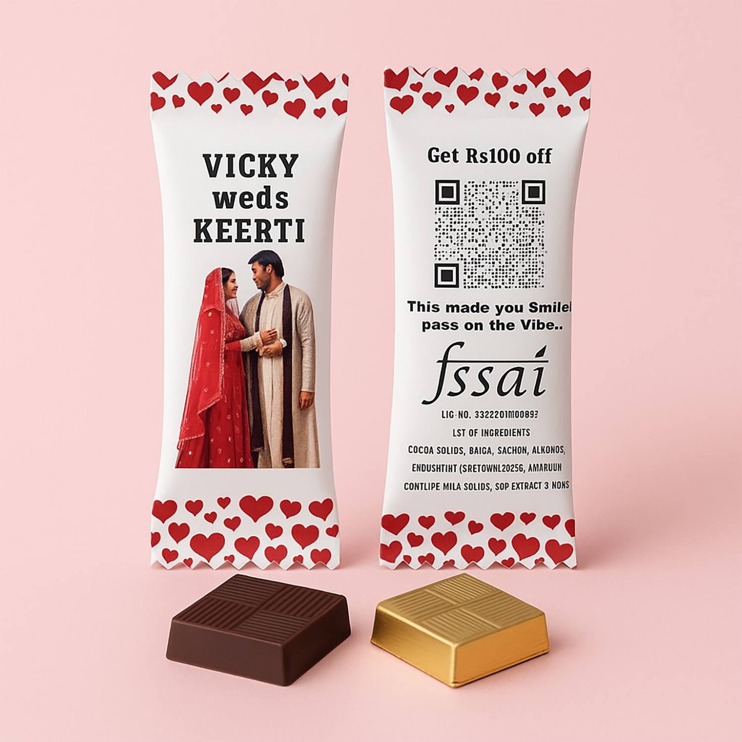 Personalized Wedding Chocolate Bar with Custom Couple Photo & Heart-Themed Wrapper Perfect for Return Gifts (25 pcs to 100 pcs)