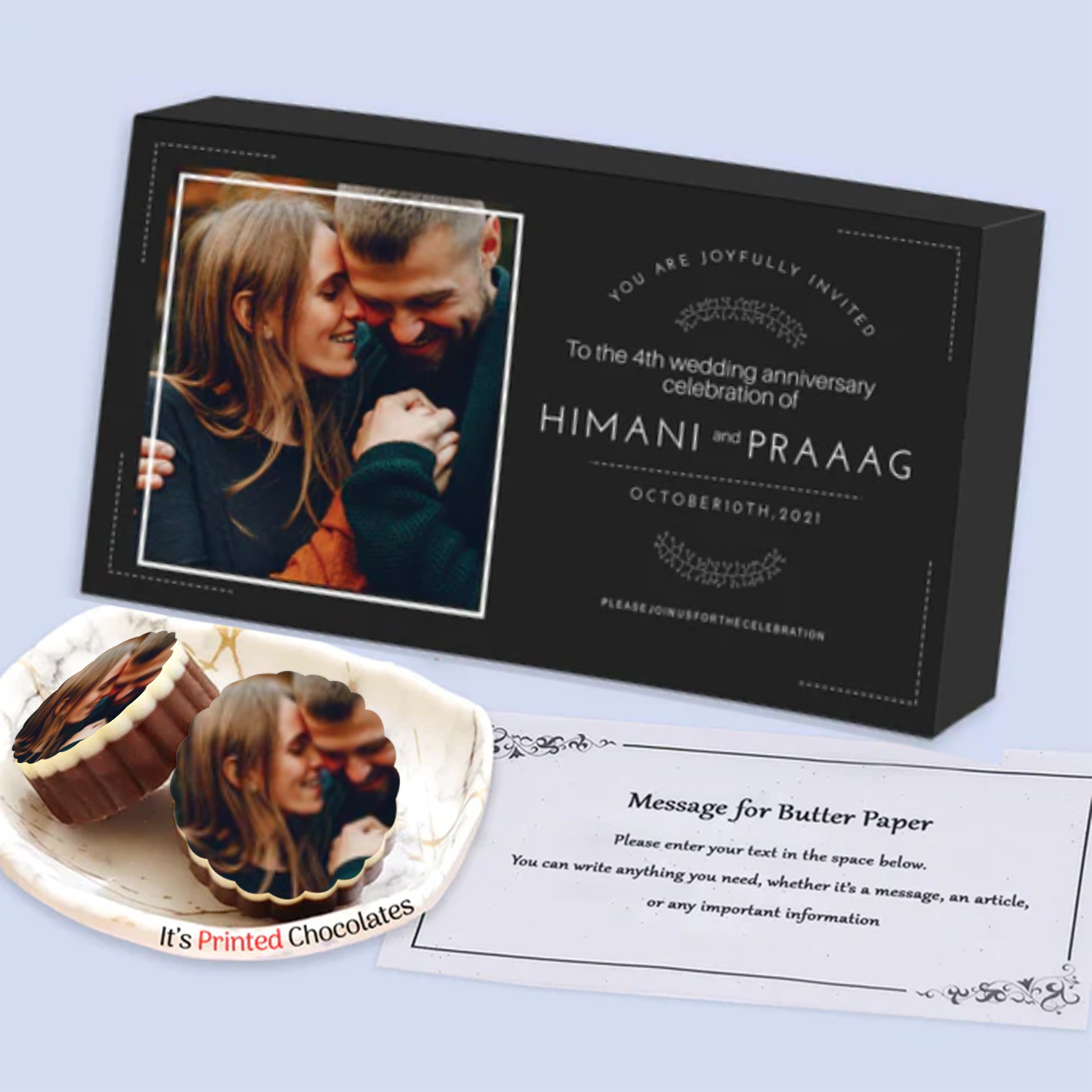 - For printed/photo chocolate:The Printing will be done on the chocolate with edible ink which is safe for consumption.No fillings will be there on printed chocolates.
