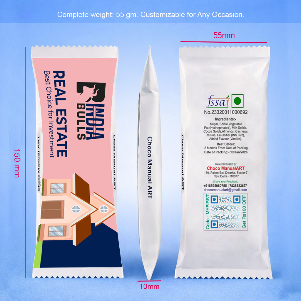 With a total weight of 55 grams, this chocolate bar is ideal for premium single-serve gifting. The compact dimensions (150 mm x 55 mm x 10 mm) make it easy to carry, distribute, and present beautifully.